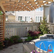 Wood brings a softer element to the hard landscape and offers a contrast to the stonework. Today’s decks and fencing are no longer limited to pressure treated or cedar. A large selection of maintenance free, composite materials can be used. In addition, wood offers the practicality, such as shade or privacy. Wood structures like arbours, fencing, and pergolas, add interest to a landscape's design. They provide an entrance way to different areas of the yard or give a point of destination.